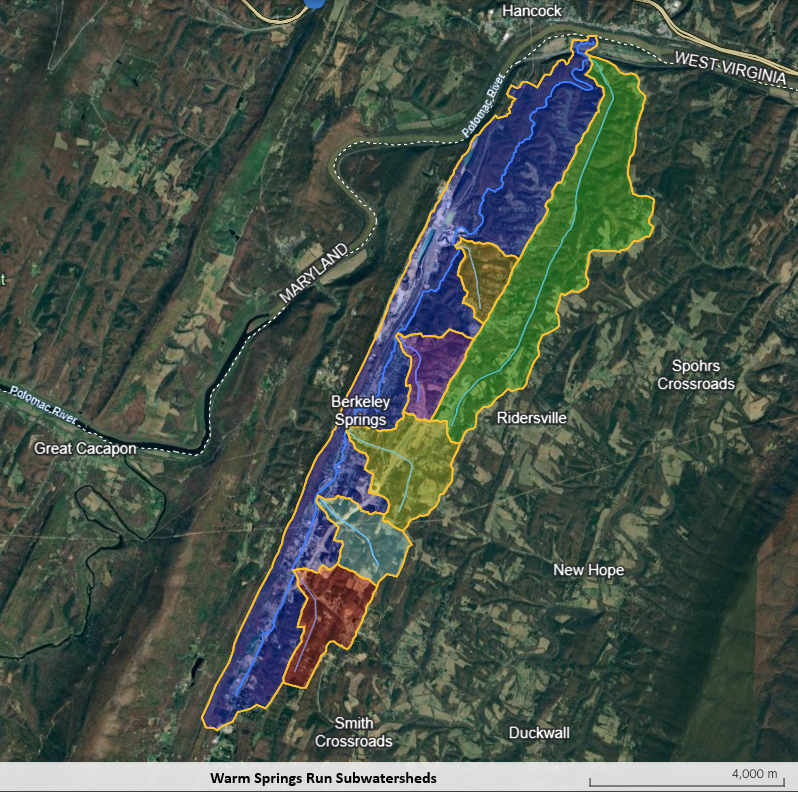 Warm Springs Watershed Logo. It shows water on the left side with an icon of a shelter, and a greenway with trees on the right side.